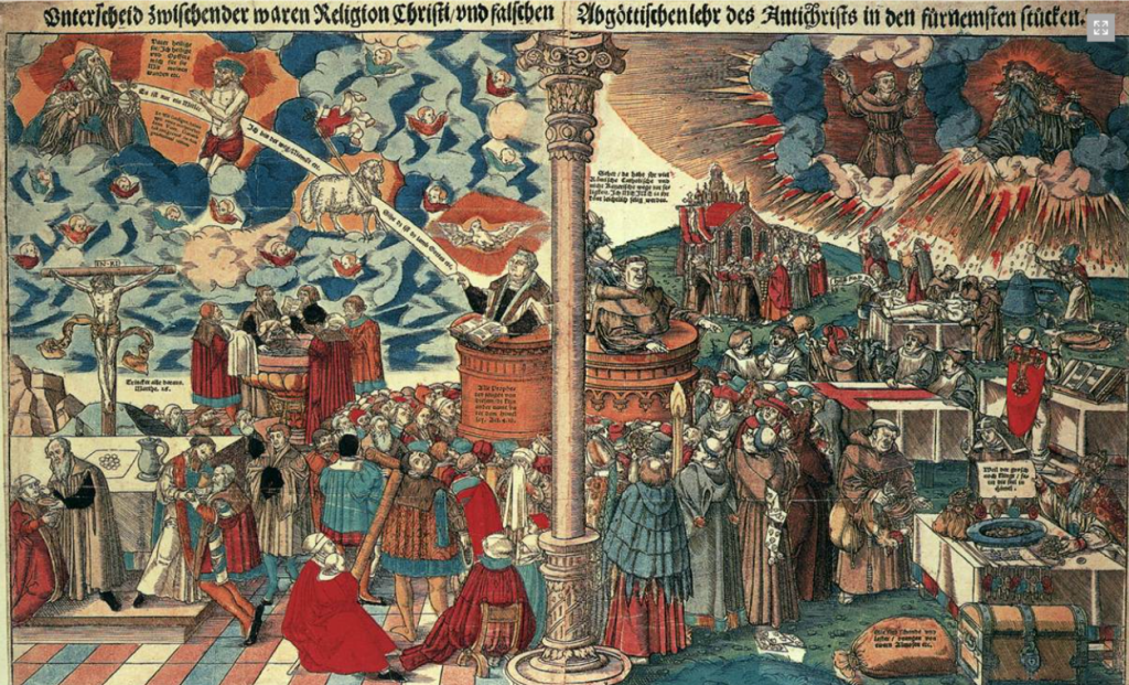 Lucas Kranach l’ancien – Le vraie religion contre la fausse religion (1545)